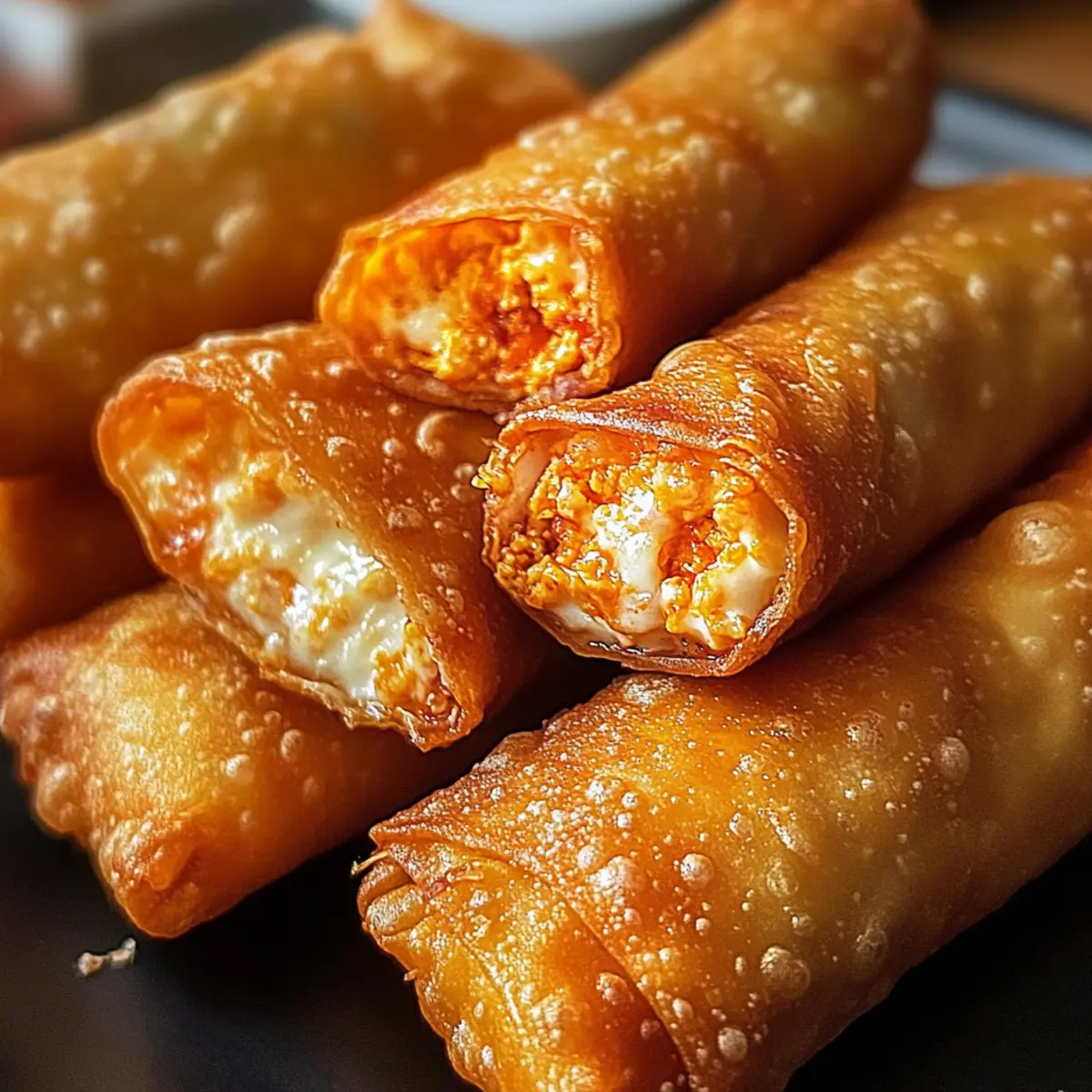 - Für gesündere Optionen: Experimentiere mit dem Air-Fryer oder Backen. Bei 200°C (400°F) luftfrittieren die Buffalo-Hühnchen-Dip-Egg-Rolls in 8-10 Minuten knusprig!