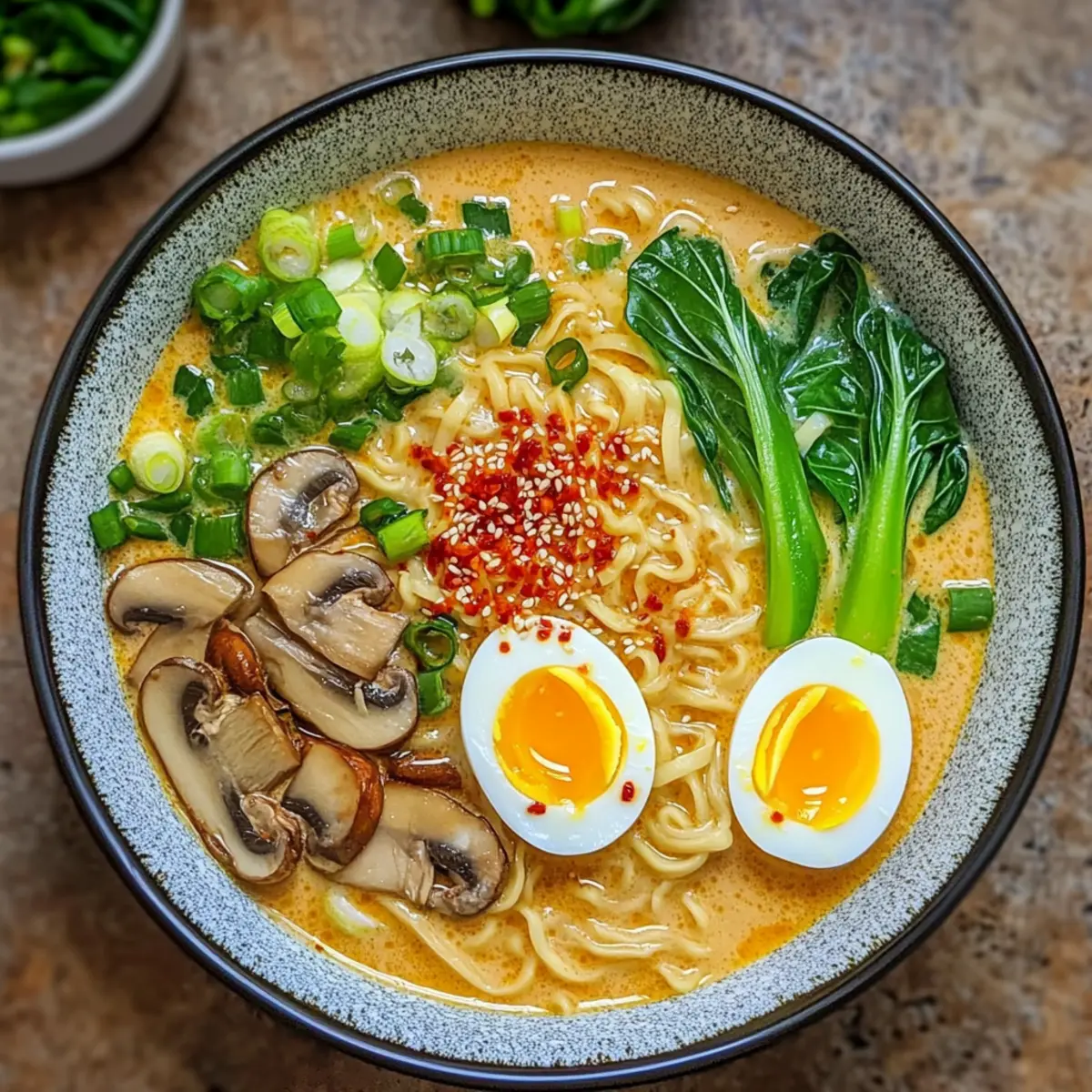 Genieße die Aromen dieser köstlichen Ramen mit leckeren Beilagen, die dein Essen perfekt abrunden.