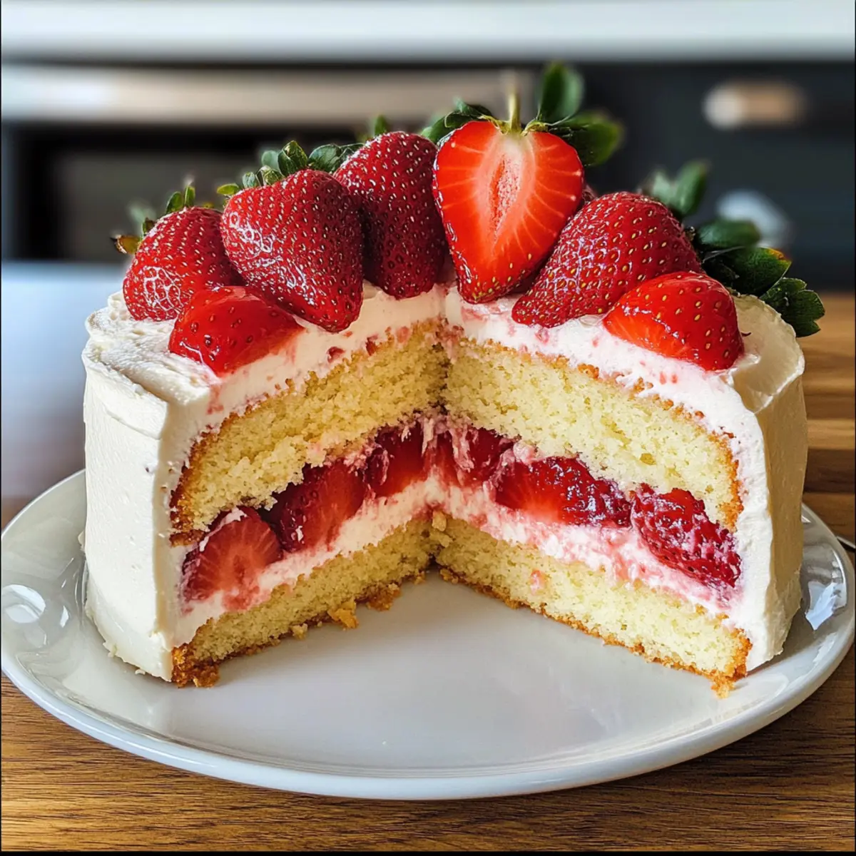 Achten auf Dekoration: Wenn du die Torte mit Erdbeeren und Glasur garnierst, füge diese erst kurz vor dem Servieren hinzu, um die beste Optik und Frische zu gewährleisten.