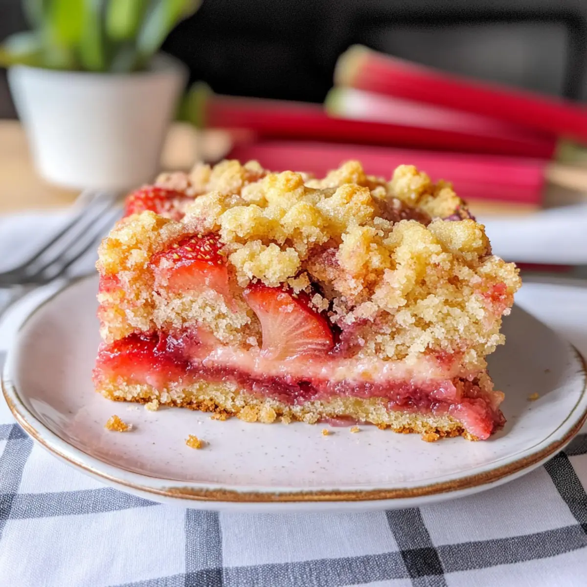 Erdbeer Rhabarber Kuchen mit knusprigem Streusel
