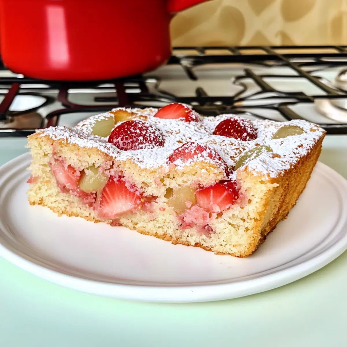 Einfachheit steht hier an erster Stelle – mit wenigen Zutaten, die jeder zu Hause hat, zauberst du im Handumdrehen einen köstlichen Kuchen. Frisch und saisonal, die Kombination aus süßen Erdbeeren und spritzigem Rhabarber sorgt für ein Geschmackserlebnis, das du in jeder Jahreszeit genießen kannst. Vielfältigkeit ist ebenfalls ein Plus – versuche, die Erdbeeren mit Himbeeren zu ersetzen oder füge etwas Zimt hinzu für einen aufregenden Twist. Perfekt für jeden Anlass, ob als Dessert beim Familienessen oder beim Sommerpicknick, dieser Kuchen zieht alle Blicke auf sich! Lass dich zudem von anderen köstlichen Rezepten wie Erdbeere Erdbeben Kuchen inspirieren.