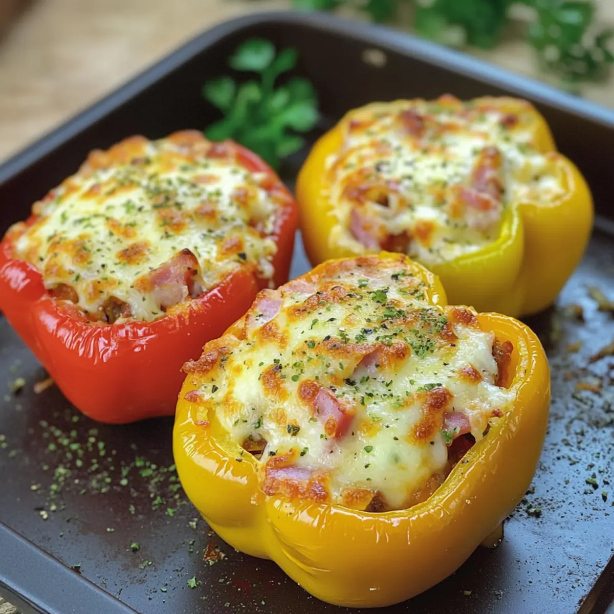 Gesundheitsbewusste Wahl: Diese gefüllten Paprika sind nicht nur ein Fest für die Sinne, sondern tragen auch zu einem ausgewogenen Ernährungsstil bei. Vielseitigkeit: Du kannst sie ganz nach deinem Gusto anpassen – probiere verschiedene Gemüse oder Proteinquellen! Schnelle Zubereitung: Mit nur wenigen Schritten hast du ein köstliches Abendessen auf dem Tisch. Vollgepackt mit Geschmack: Die Kombination aus cremiger Füllung und knusprigem Käse sorgt für ein Geschmackserlebnis, das du lieben wirst. Perfekt zum Teilen: Ideal für gesellige Abende oder als Meal Prep für die kommende Woche. Entdecke auch andere kreative Füllungsvarianten, um noch mehr Abwechslung in deine Küche zu bringen!
