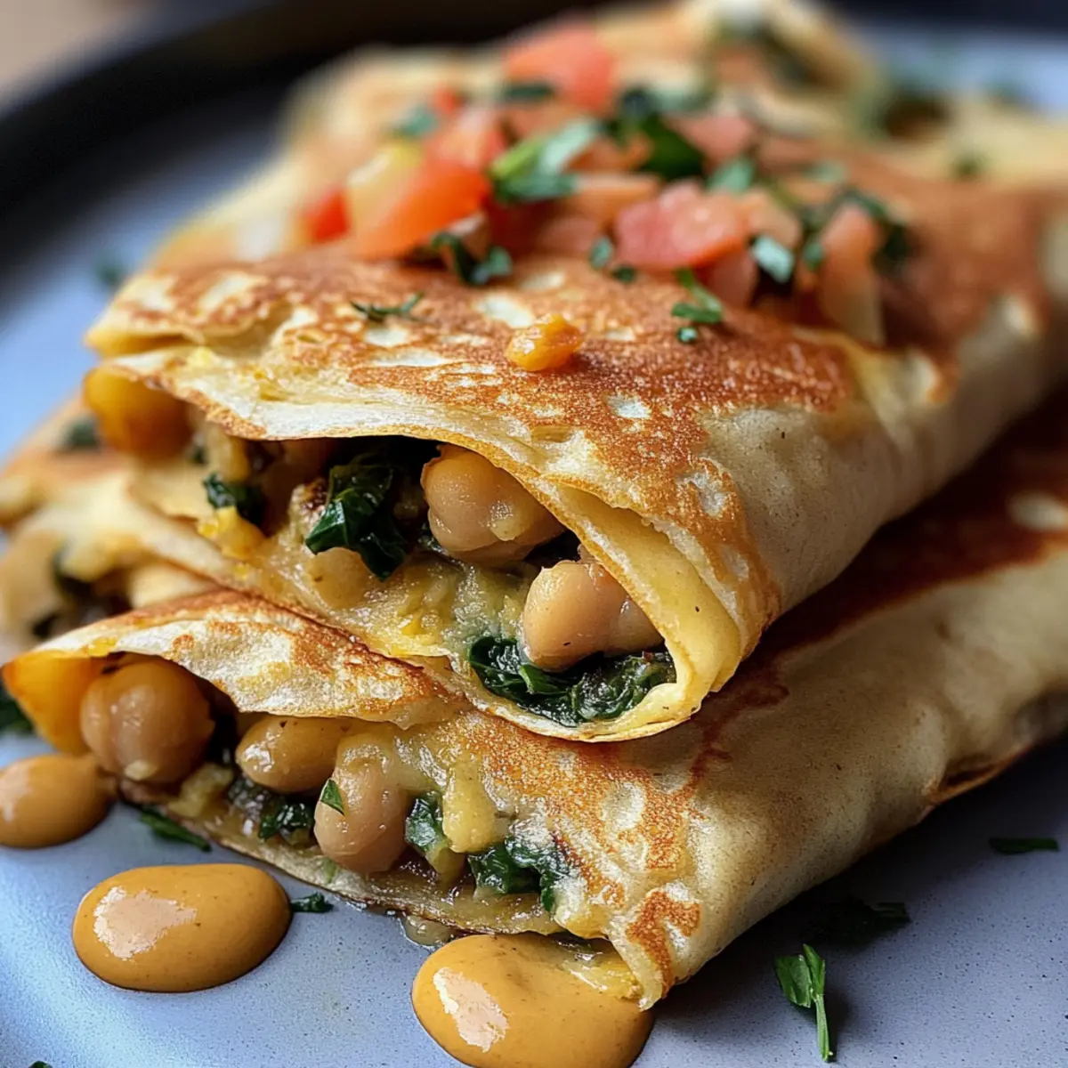 - Dipp-Saucen: Probiere die Crepes mit einer selbstgemachten veganen Käsesauce, scharfer Sauce oder einem einfachen, mit Kräutern verfeinerten Joghurtalternativ zu servieren – das ergänzt den Geschmack wunderbar!