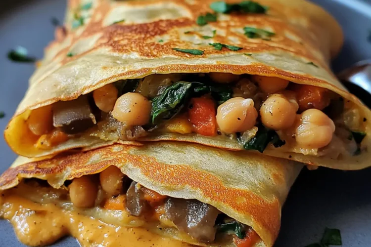 Vielfältiger Genuss: Mit frischem Gemüse und proteinreichen Kichererbsen sind diese Crepes sowohl nahrhaft als auch geschmacklich überzeugend.