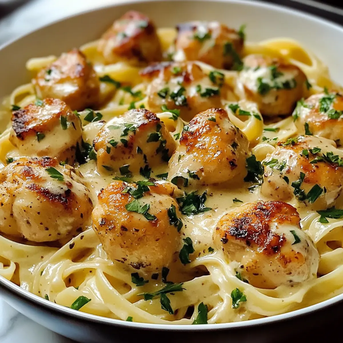 Garlic Butter Chicken Bites with Creamy Parmesan Pasta Recipe mee8se