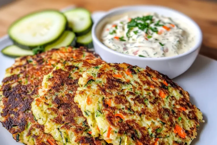 Leckere Gemüsepuffer mit Knoblauch-Dip