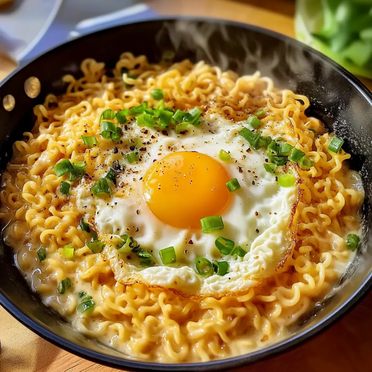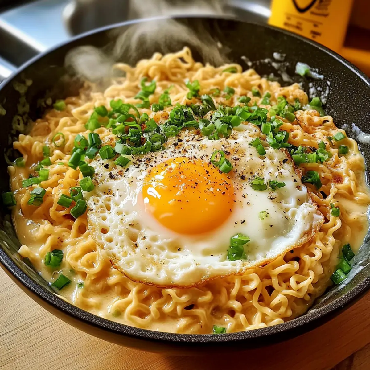 Entdecke, wie einfach es ist, leckere Ramen-Nudeln mit Ei und Käse zuzubereiten. Perfekt für ein schnelles Mittagessen!