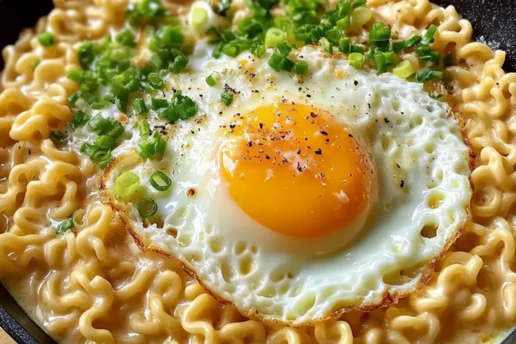Leckere Ramen-Nudeln mit Ei und Käse in 10 Minuten