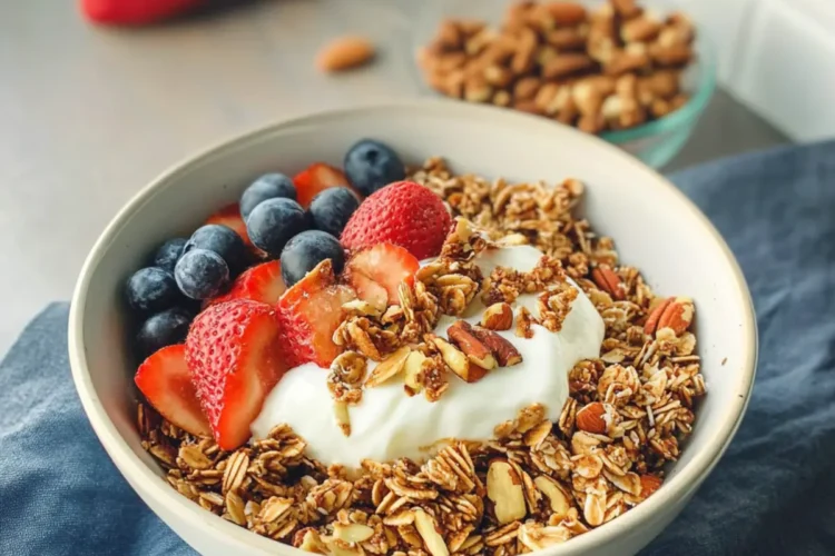 Süße Beeren: Erdbeeren oder Heidelbeeren bringen fruchtige Frische und Antioxidantien, die perfekt zum nussigen Crunch passen.