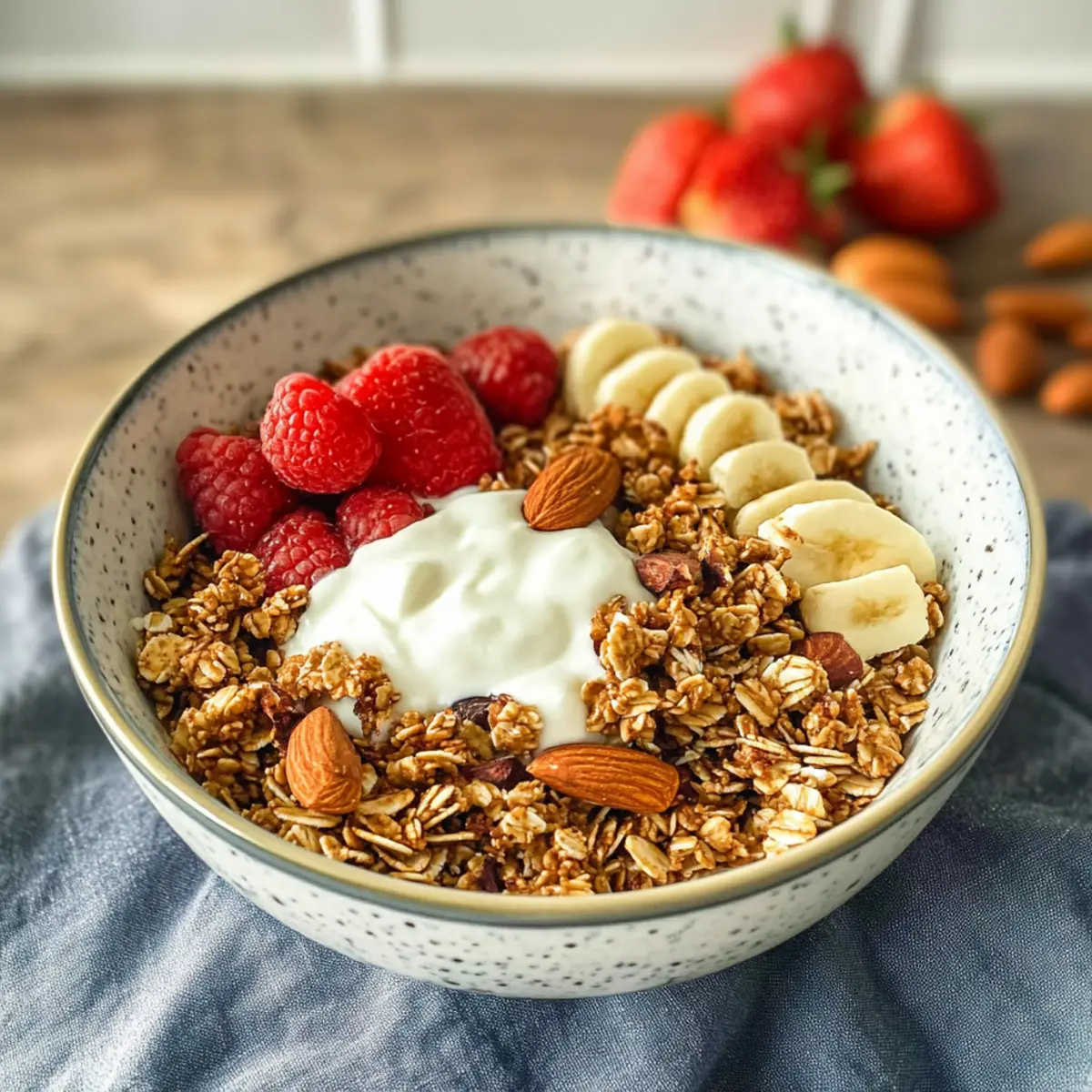 Extra Crunch: Füge ungesüßte Kokosraspeln hinzu, die den Crunch verstärken und ein exotisches Aroma verleihen. Sie sind eine köstliche Ergänzung, die dein Frühstück aufwertet.