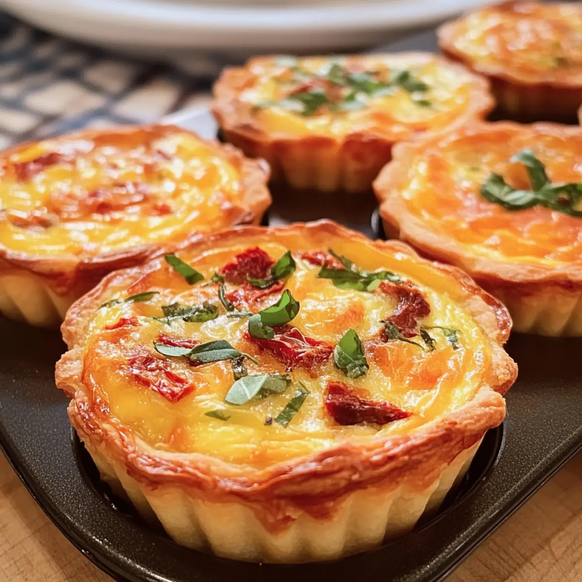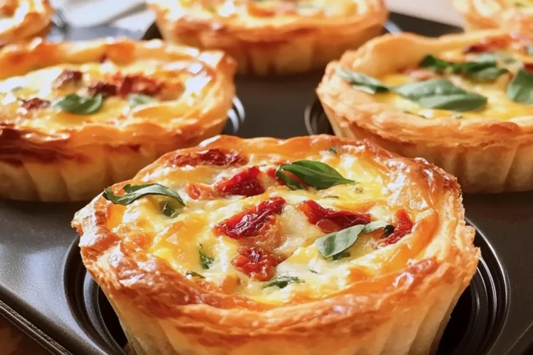 - Backe die Mini-Quiches für etwa 20 Minuten oder bis sie goldbraun sind.