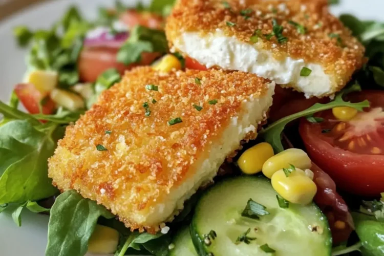 Dieses Rezept für panierter Fetakäse auf Salatbett ist eine köstliche Wahl, die du lieben wirst!