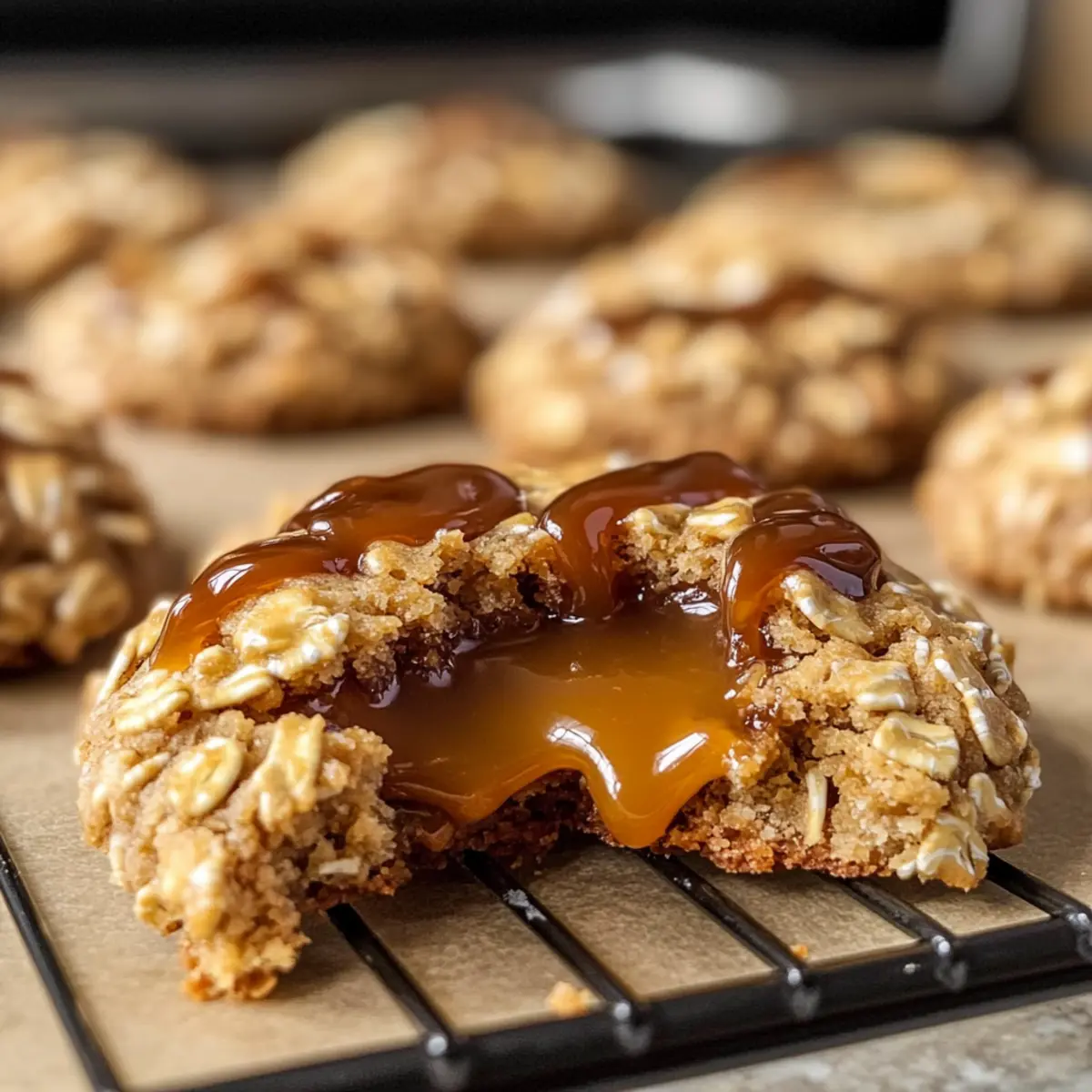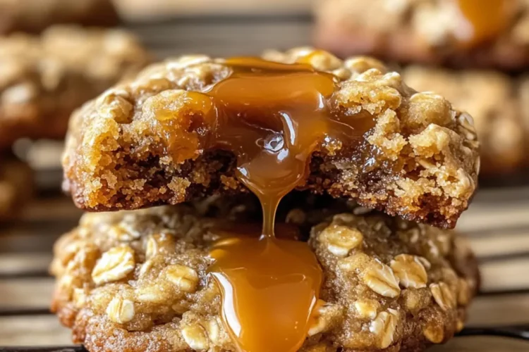 Diese Saftigen Karamell-Haferflocken-Cookies bieten einen gooey Kern und sind perfekt für einen süßen Snack.