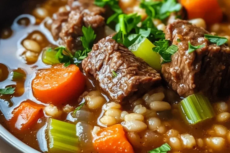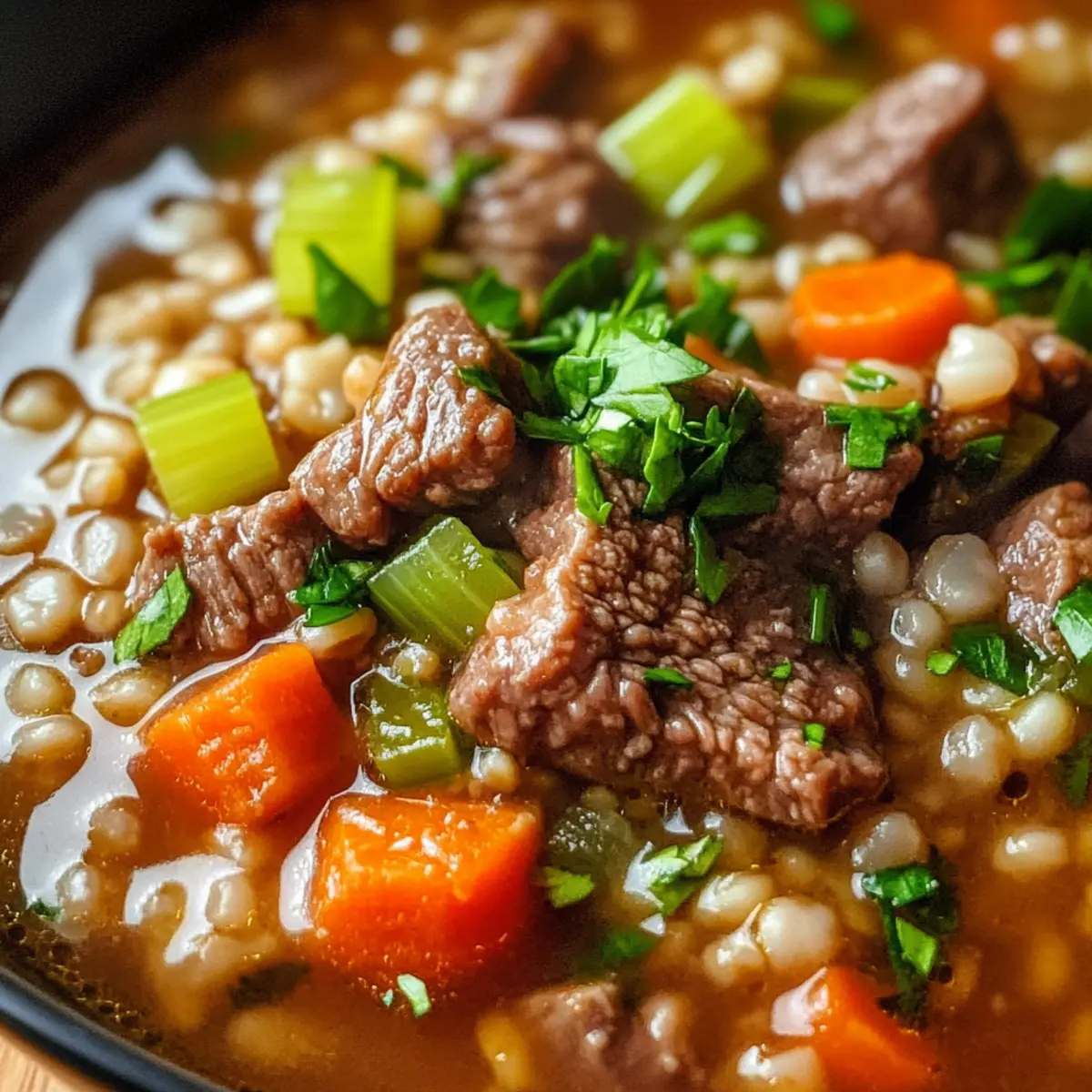 Langsame Rindfleisch- und Gerstensuppe für Gemütlichkeit