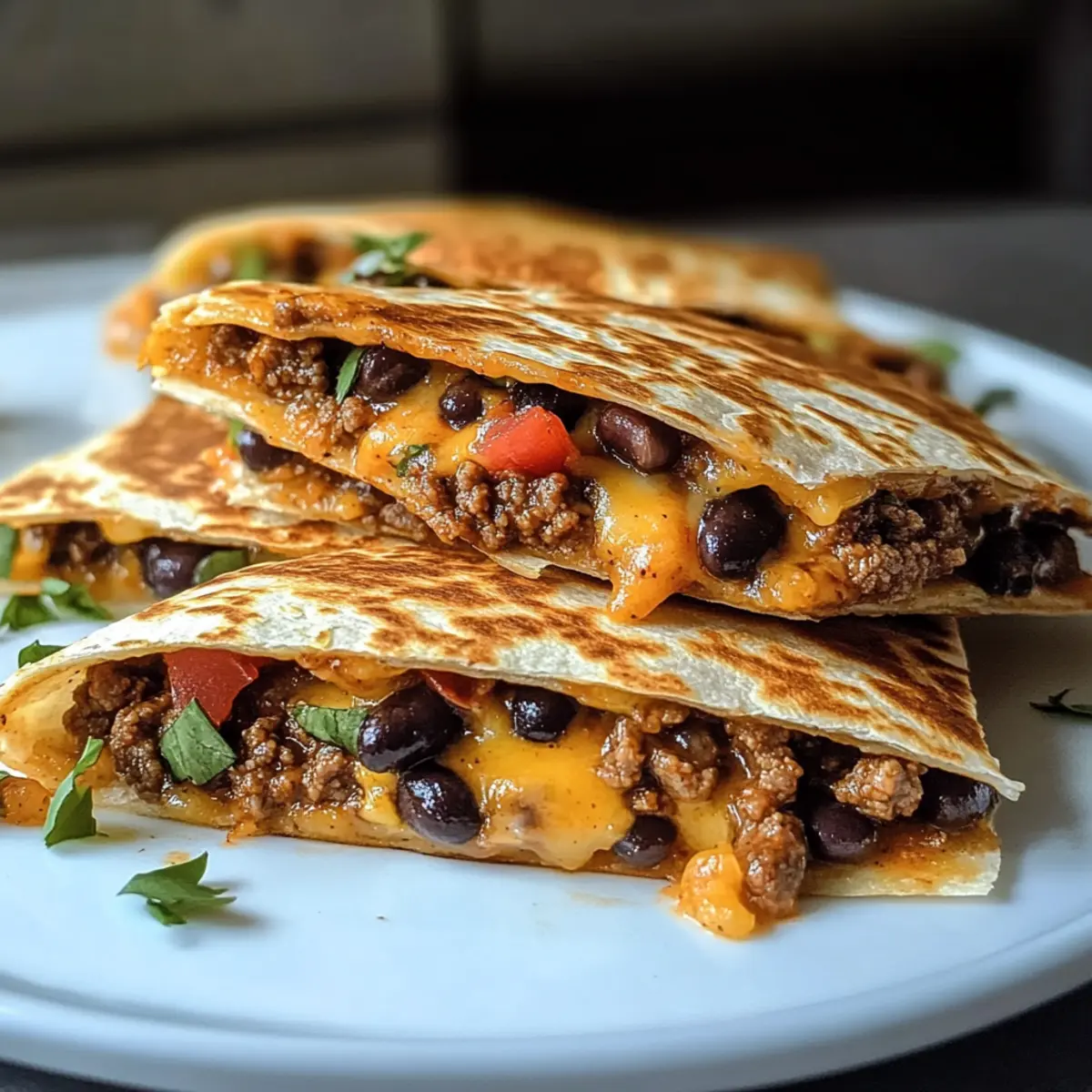 Südwestliches Rindfleisch und Schwarze Bohnen Quesadillas
