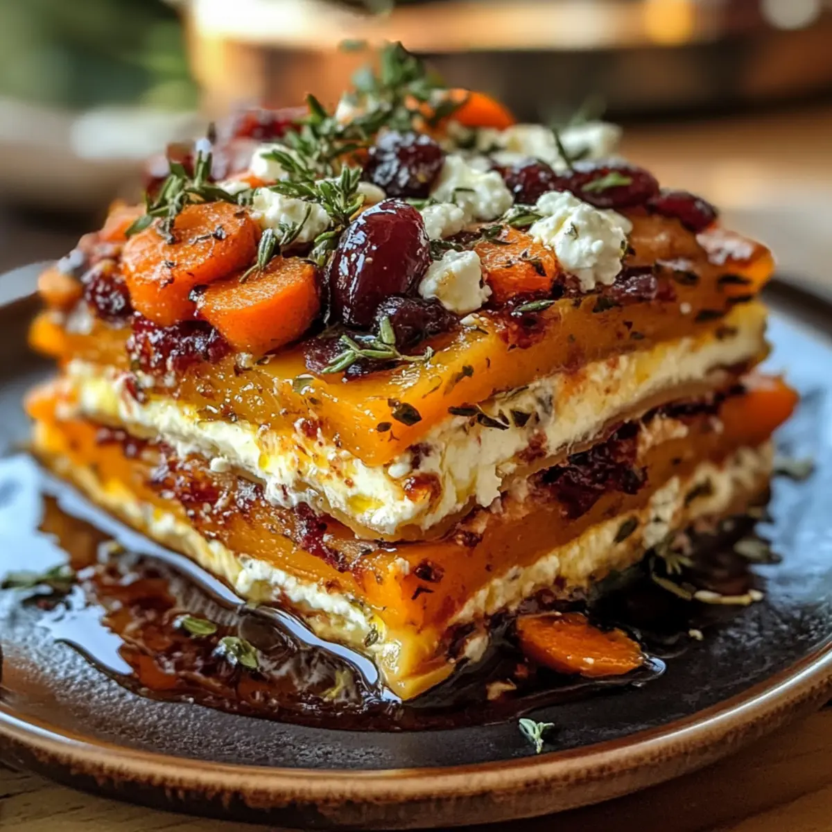 Vielfalt der Aromen: Jedes Gemüse bringt seine eigene Note ein, während die Kombination aus Feta und Cranberry-Glasur für ein harmonisches Geschmackerlebnis sorgt. Einfache Zubereitung: Mit nur wenigen Schritten verwandeln Sie frische Zutaten in ein wunderschönes Gericht. Saisonale Leckerei: Perfekt für die Herbstsaison, nutzt es die besten Geschmäcker der Erntezeit. Visuelles Meisterwerk: Die bunten Schichten sind nicht nur ein wahrer Augenschmaus, sondern auch ideal für Dinnerpartys oder Familientreffen. Gesunde Wahl: Diese Lasagne ist reich an Beta-Carotin und gesunden Fetten, perfekt für bewusste Genießer. Wenn Sie nach weiteren Varianten suchen, probieren Sie unser Süßkartoffel Runden Rezept oder unsere Honigglasierten Karotten und Grünen Bohnen.