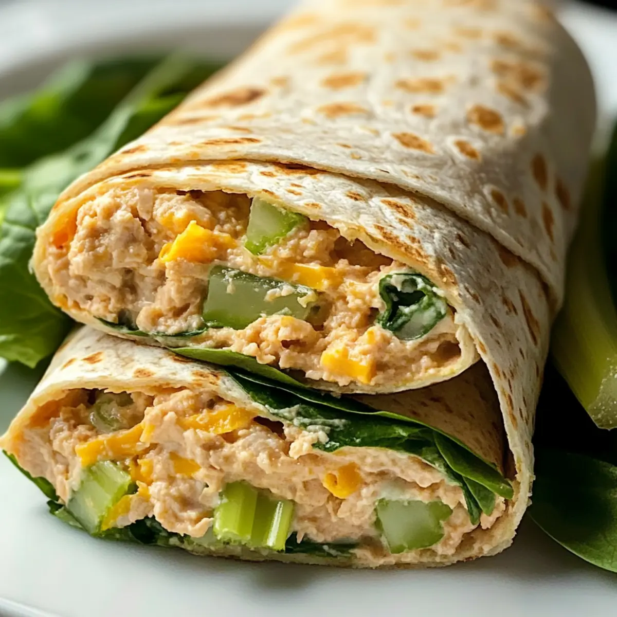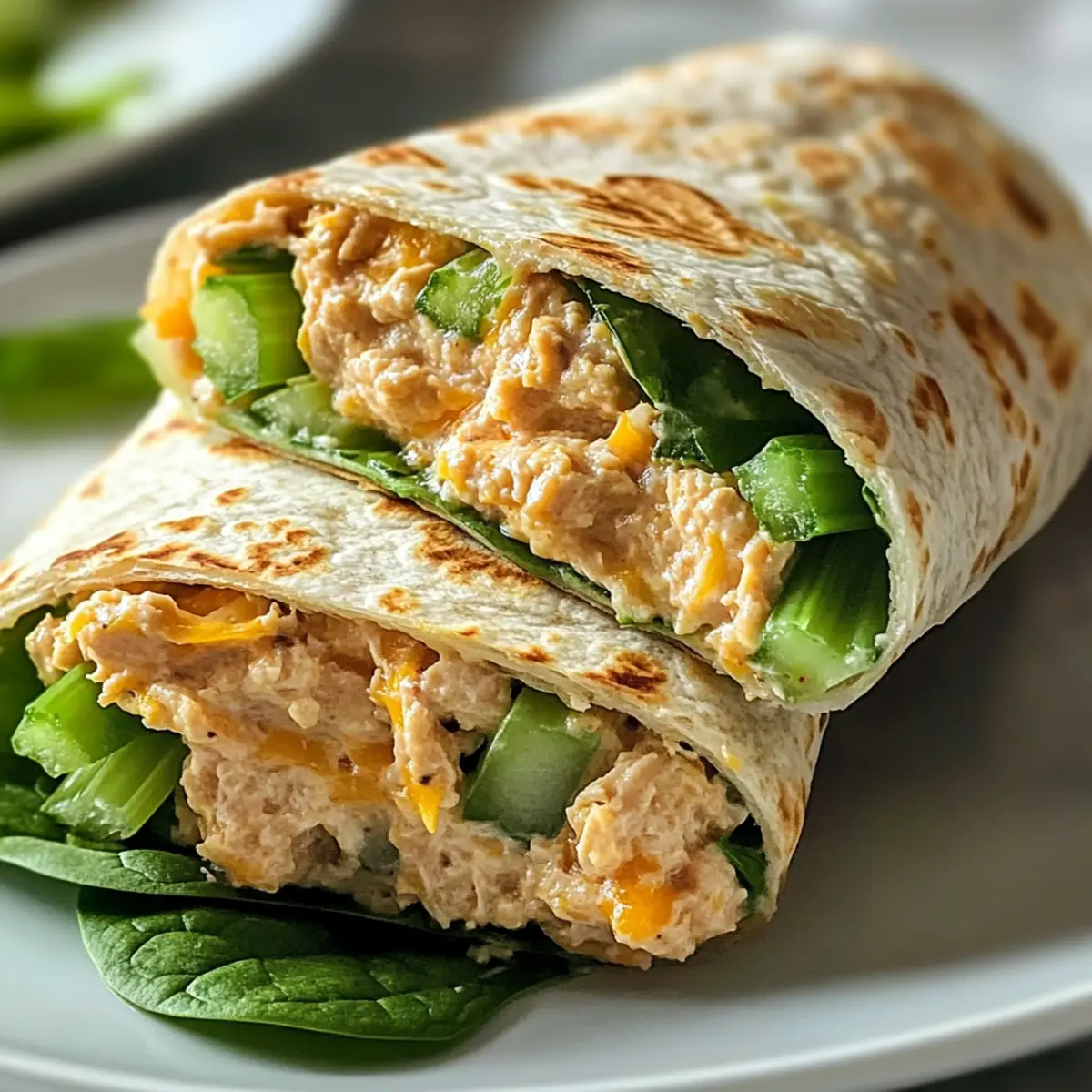 Legt die Vollkorn-Tortilla flach auf eine saubere Arbeitsfläche. Gebt die vorbereitete Thunfisch-Mischung in die Mitte der Tortilla und streut optional Käse und frische Blätter wie Salat oder Spinat darauf. Achtet darauf, dass die Füllung gleichmäßig verteilt ist, damit jeder Bissen köstlich wird. Die Zusammenstellung sollte etwa 5 Minuten in Anspruch nehmen.